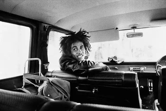 .Это первое фото, которое снял Моррис, когда сел в 1974 году в Ford Transit Боба Марли. Как вспоминает фотограф, Марли просто повернулся и сказал: "Ты готов, Деннис? У нас будет незабываемое приключение!".