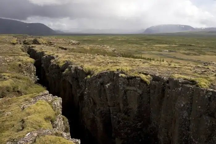 В Исландии на территории Национального парка «Тингведлир» находится одно из самых удивительных мест на земле – место расхождения тектонических плит. Здесь расходятся Евразийская и Северо-американская тектонические плиты, из-за чего наблюдается повышенная вулканическая активность, а на южном берегу озера Тингвадлаватн расположен вулкан Хенгиль.
