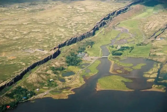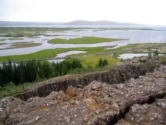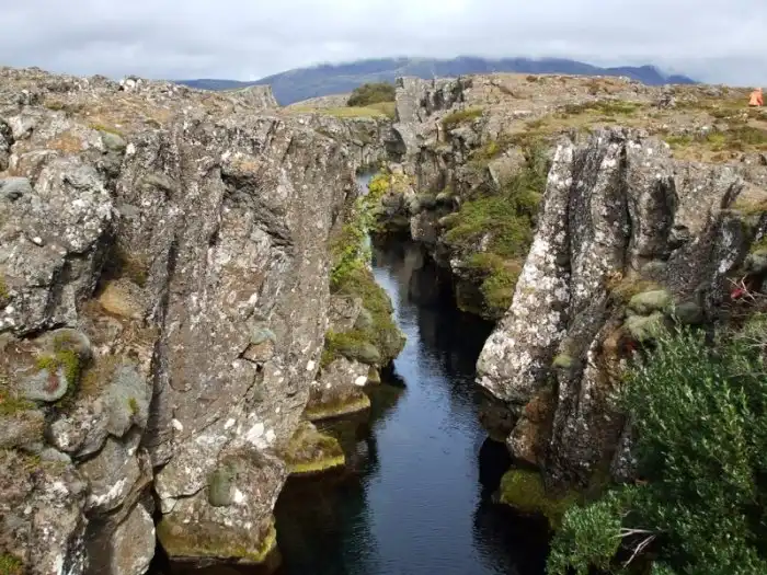 «Тингведлир» одно из двух мест в мире, где можно воочию наблюдать за движением литосферных плит. По исследованиям ученых ежегодно Америка и Европа отдаляются друг от друга на 7 миллиметров.
