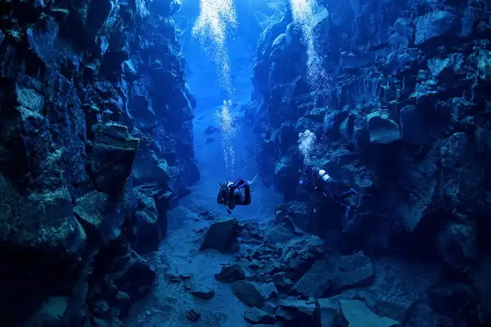 В некоторых местах столкновений плит есть впадины глубиной до 60 метров, которые наполнены чистой холодной водой. Ныряльщикам запрещено погружаться на глубину более 30 метров и заплывать в подводные пещеры.