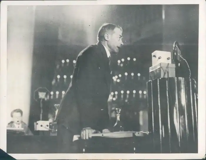 1929 года. Прохожие рассматривают плакаты в Ленинграде.