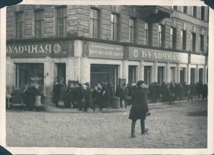 1930 год. Очередь за хлебом на улицах Ленинграда.