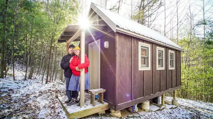 Вместо городского шума Лора и Мэтт выбрали покой и единение с природой. Свой дом площадью 11 "квадратов" они построили в горах Северной Каролины.