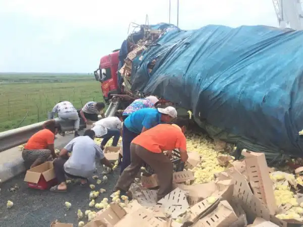 Несмотря на недовольство полиции, местные жители начали собирать птенцов и уносить их домой. Точно так же пытались поступить и проезжавшие мимо водители. По словам водителя грузовика, общая стоимость цыплят составляет 50.000 юаней, или 7800 долларов.