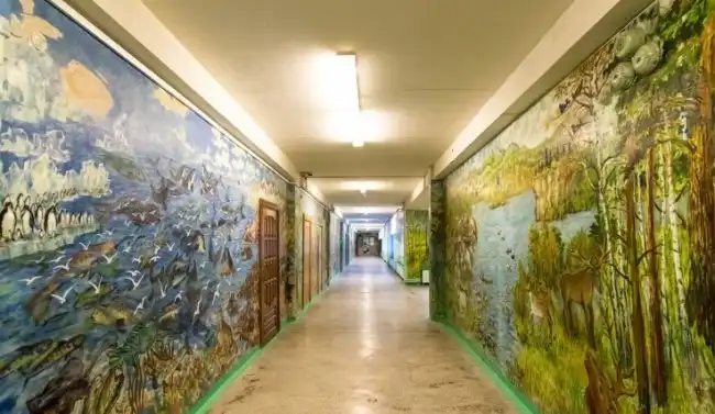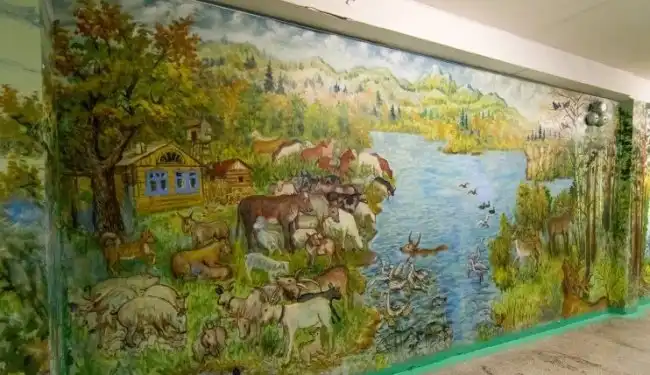 Есть такие люди, которым доставляет удовольствие делать мир вокруг себя лучше. Валерию Храмову из Екатеринбурга 90 лет. Последние 25 лет он работает в школе. Сначала преподавал изобразительное искусство, а потом устроился сторожем, но рисовать не бросил. Он расписал стены на всех трех этажах учебного заведения, превратив школу в сказочный мир. Да так, что первоклашкам иногда проводят экскурсию по его галереям!
