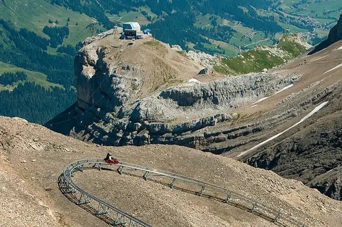 Но это не единственное летнее развлечение на горнолыжном курорте. Здесь построены американские горки «по-швейцарски»! Тут нет подъемов и мертвых петель, только длинный спуск, крутейшие повороты и никаких ограничений на краю пропасти.