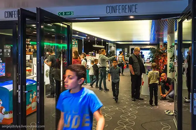 Conference area популярна зимой, разные компании устраивают тут конференции. Для этого есть всё оборудование – проекторы, микрофоны и так далее. Летом, во время школьных каникул и туристического наплыва, конференц-зал превращают в дополнительную детскую площадку: