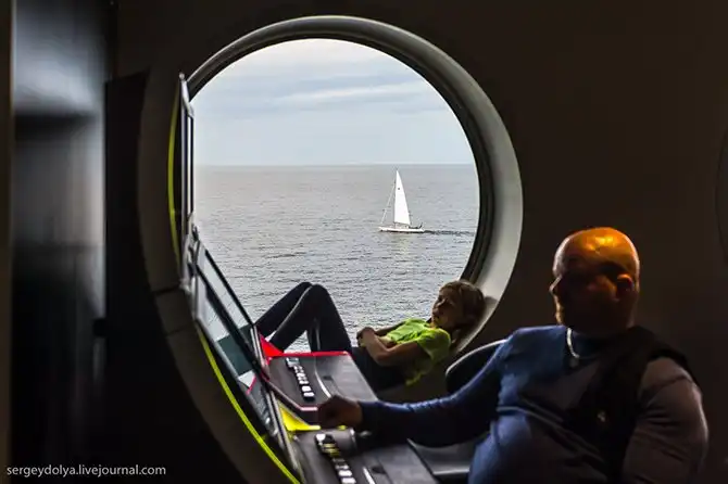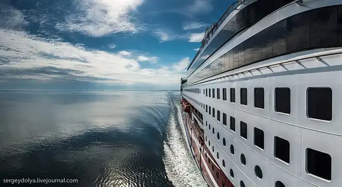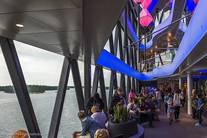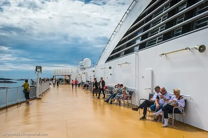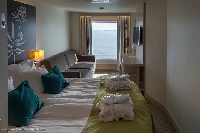 Очень тихий корабль. Обычно в круизных лайнерах от одного берега до другого тебя сопровождает какой-то гул или шум, а тут двигателей совершенно не слышно. Даже момент отплытия от берега себя ничем не выдает: