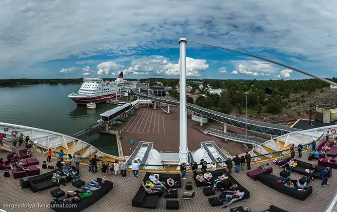 Единственная 15-минутная остановка на пути – в порту финской автономии. За счет неё на борту допускается продажа Duty Free: