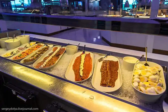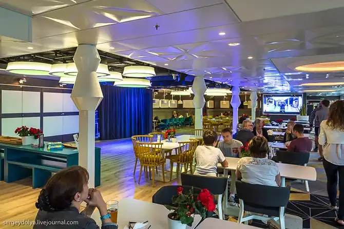 Всего на пароме 4 ресторана и 4 бара.