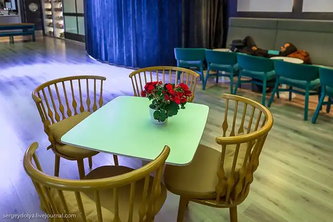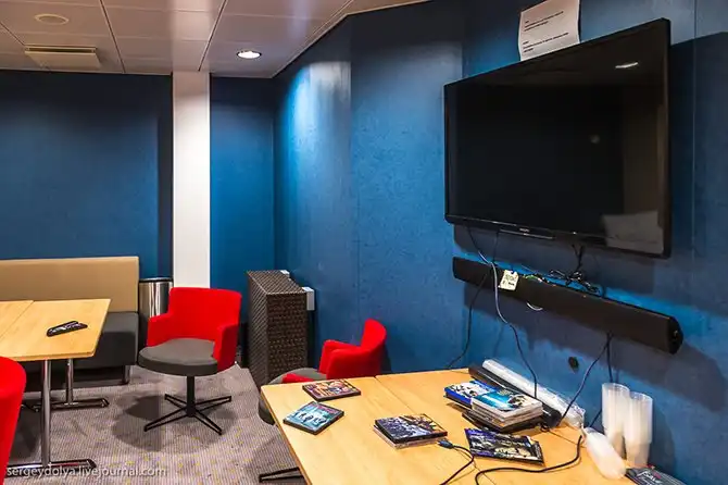 Во-первых, три отдельных салона для подростков. Один для самых мелких (до 7 лет), второй для тех, кто чуть постарше (7 – 12 лет). Воспитателей, которые присматривали бы за детьми тут нет (предполагается, родители сами должны позаботиться о своем ребенке). Третий салон сделан в виде клуба для старших ребят – тех, которые уже вырос из детской комнаты, но ещё не хочет тусоваться с родителями:
