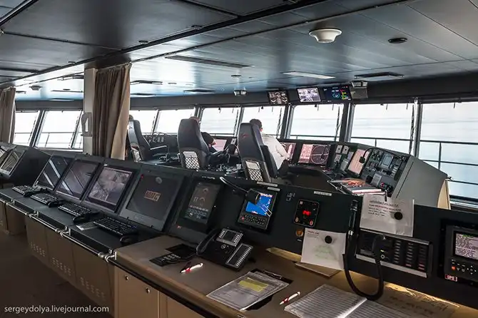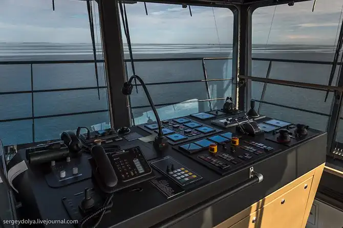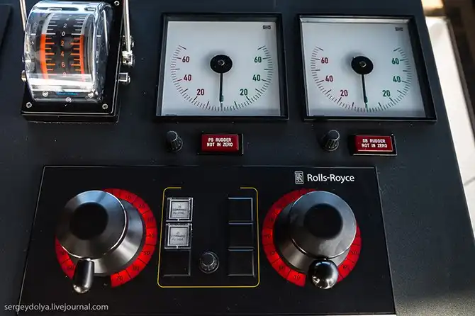 Ручное управление вынесено на обе стороны капитанской рубки, чтобы можно было маневрировать в порту: