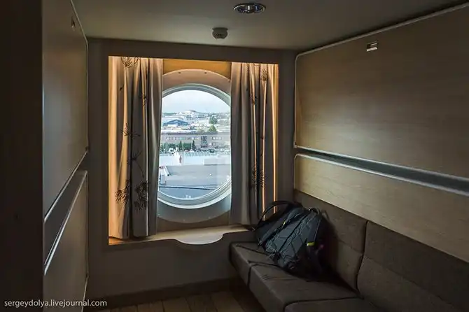 Кстати, днем можно купить билет без каюты по 20 евро в одну сторону, но спать в общих зонах не разрешают. Хотя некоторые все-таки ухитряются: