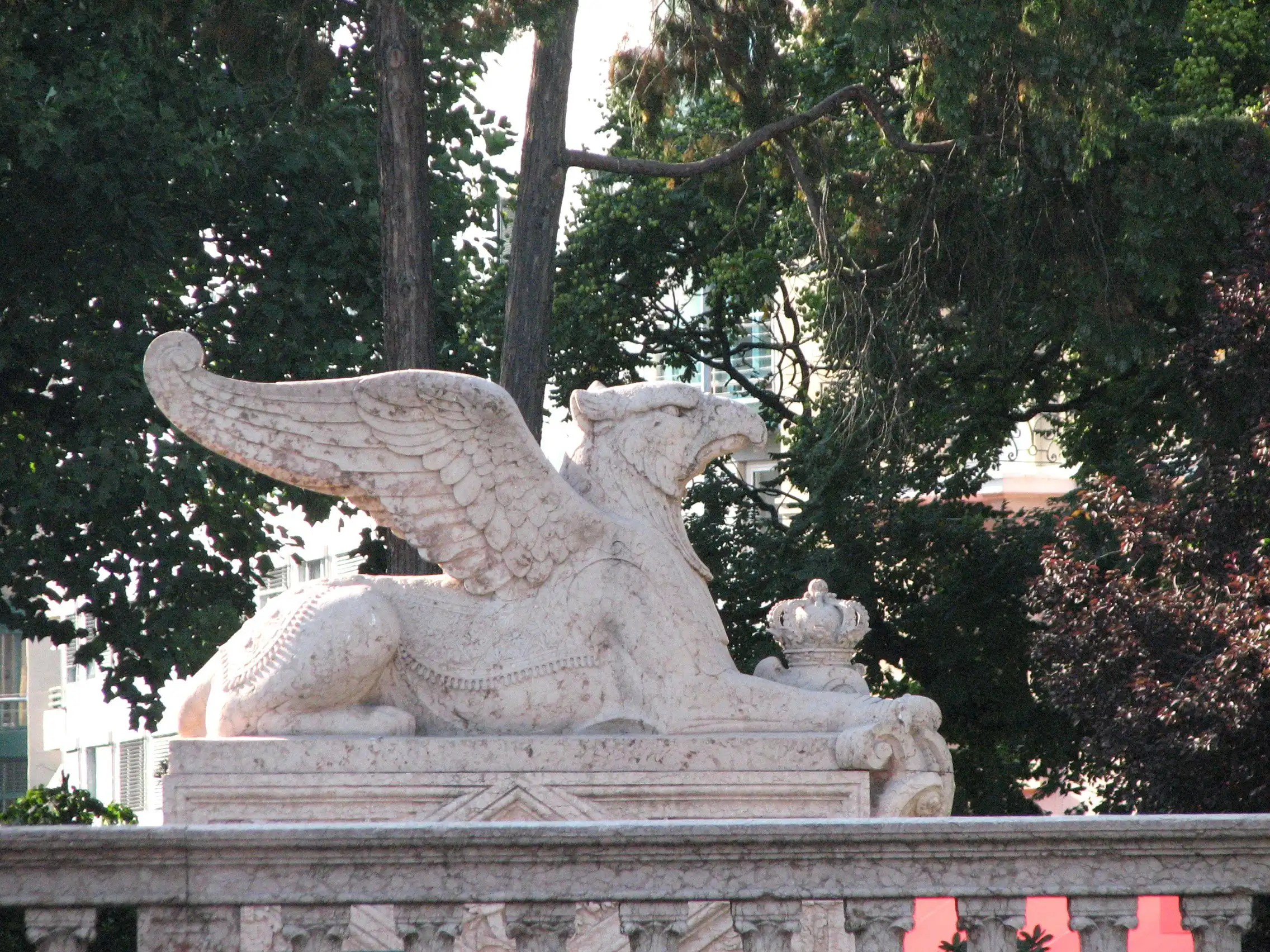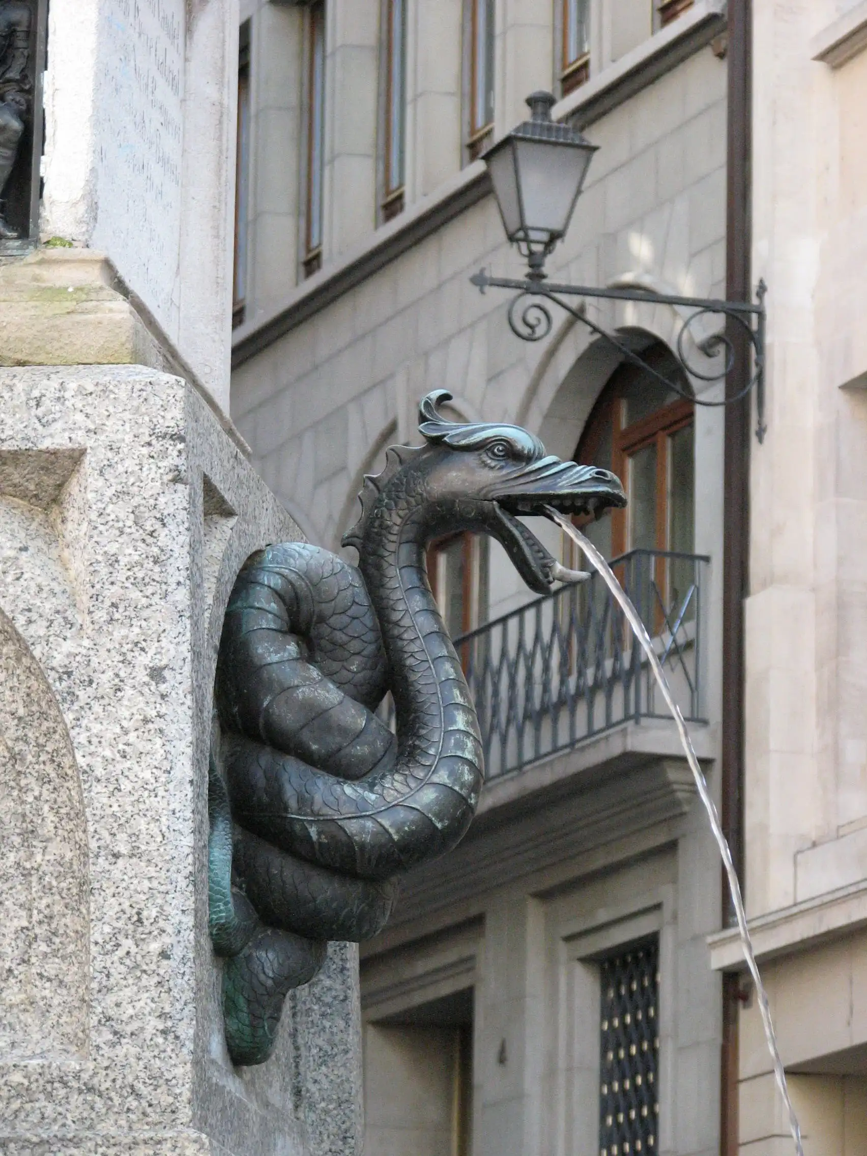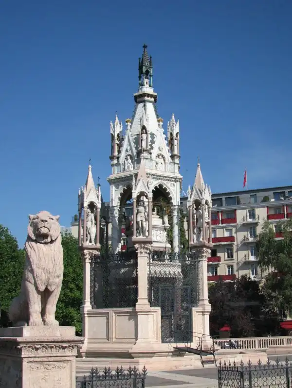 В самом центре напротив фонтана стоит мавзолей какого-то князя, являвшегося значительным спонсором городского строительства. По стилю это стилизованный под готику модерн начала XX века.