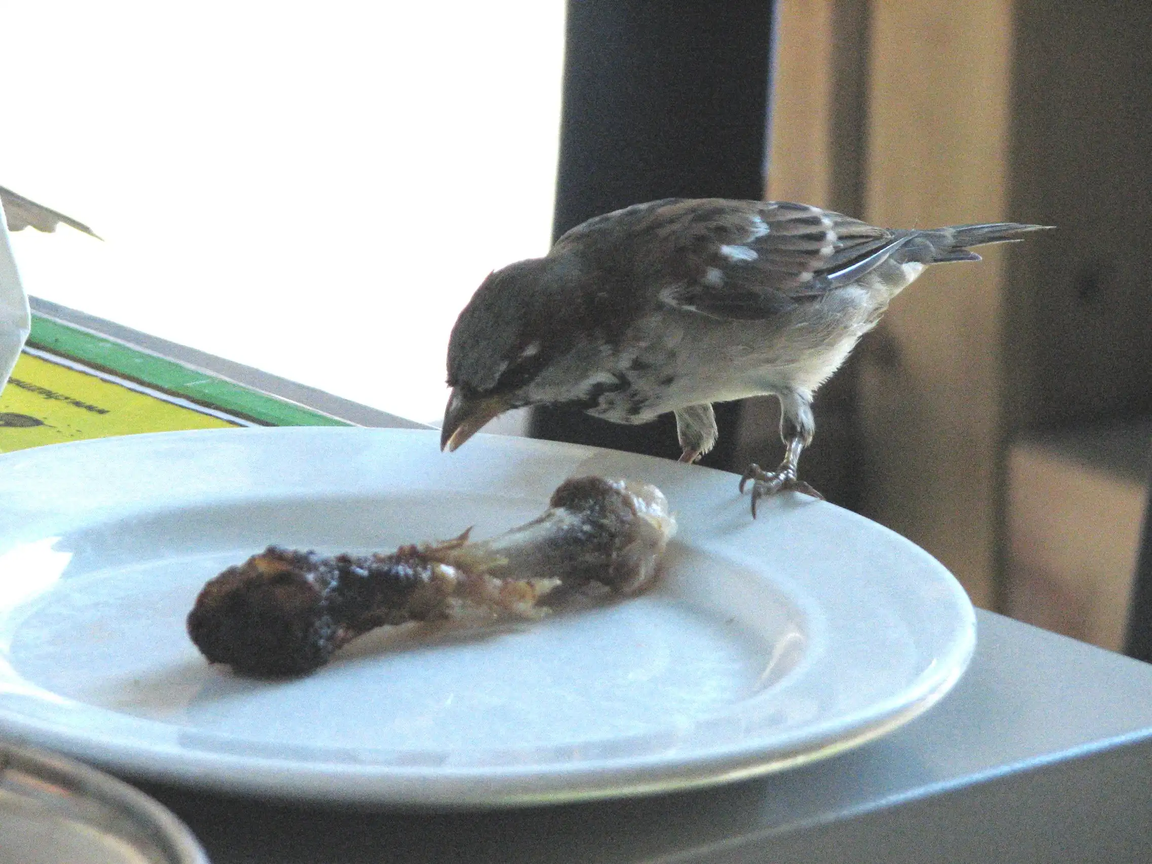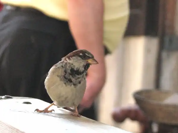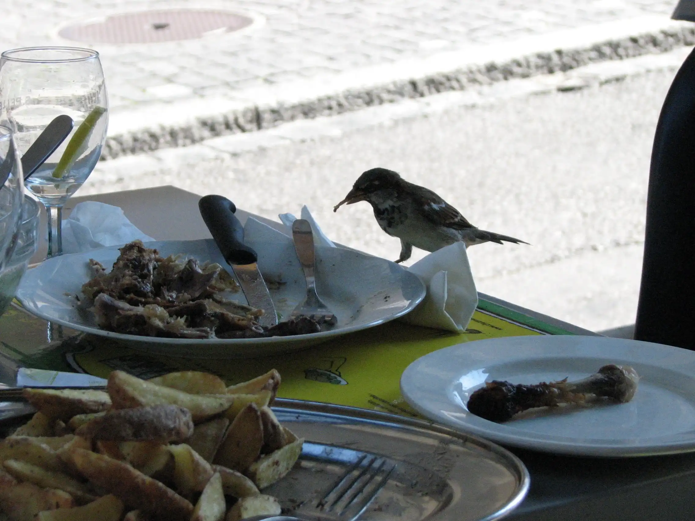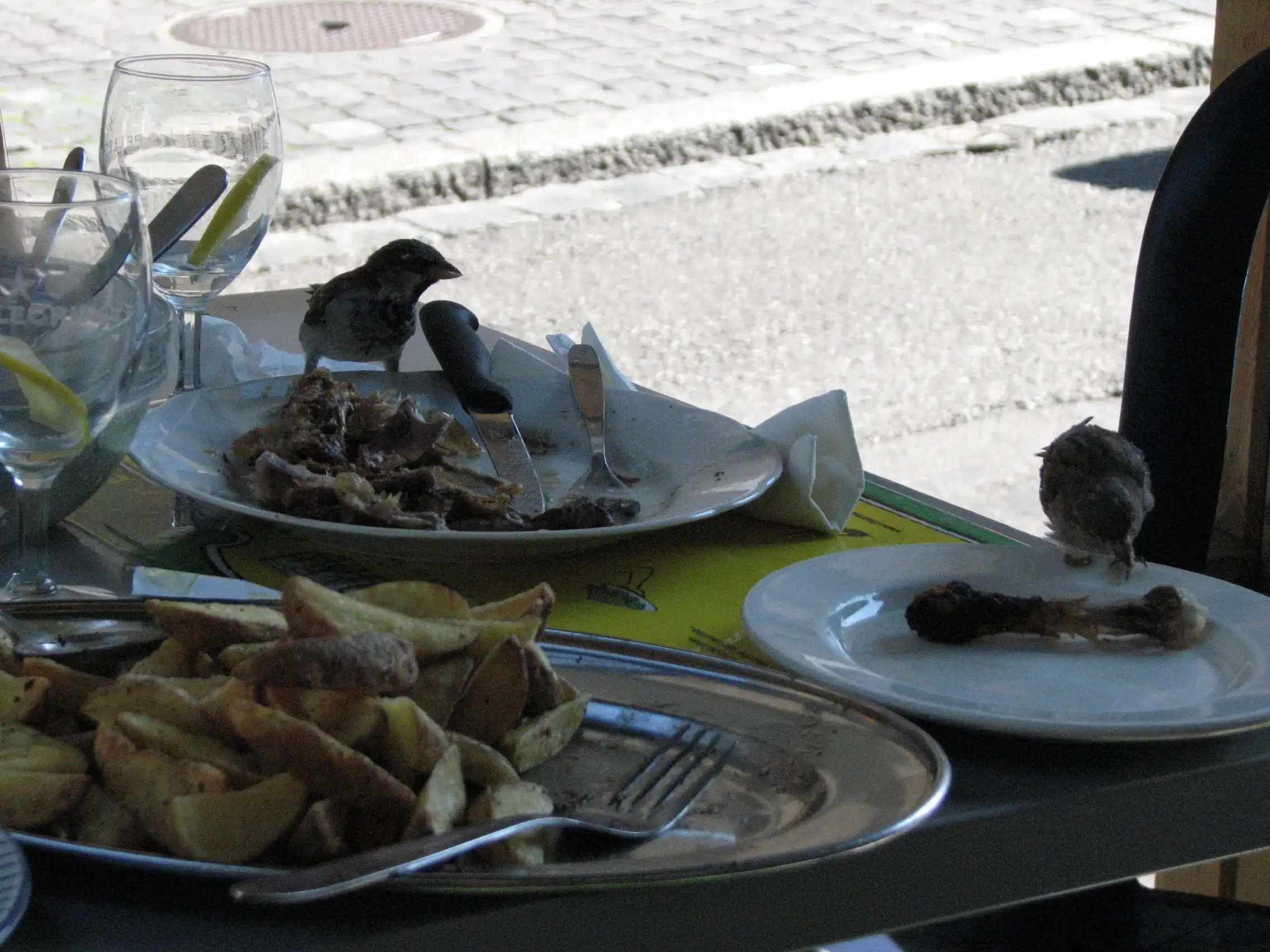 Здесь тусуется дикое количество наглых воробьёв, совершенно не обращающих внимание на посетителей, так что я устроил тут фотосессию с ними…