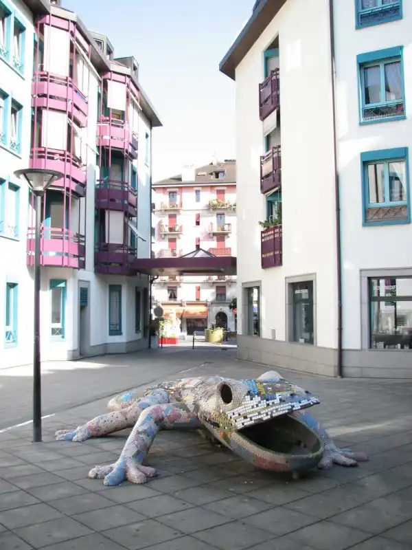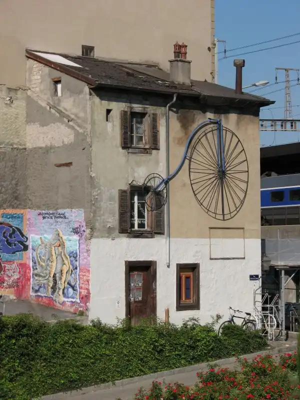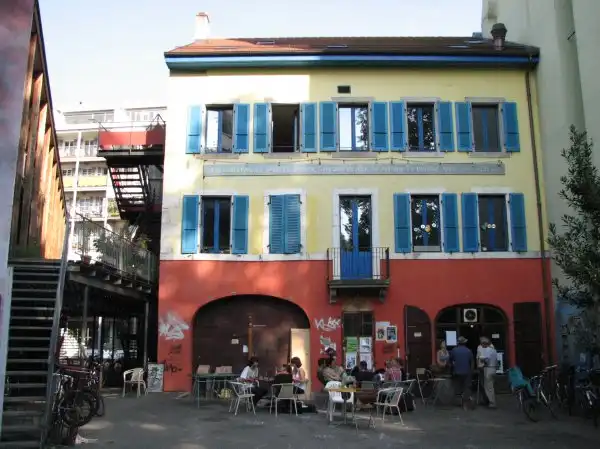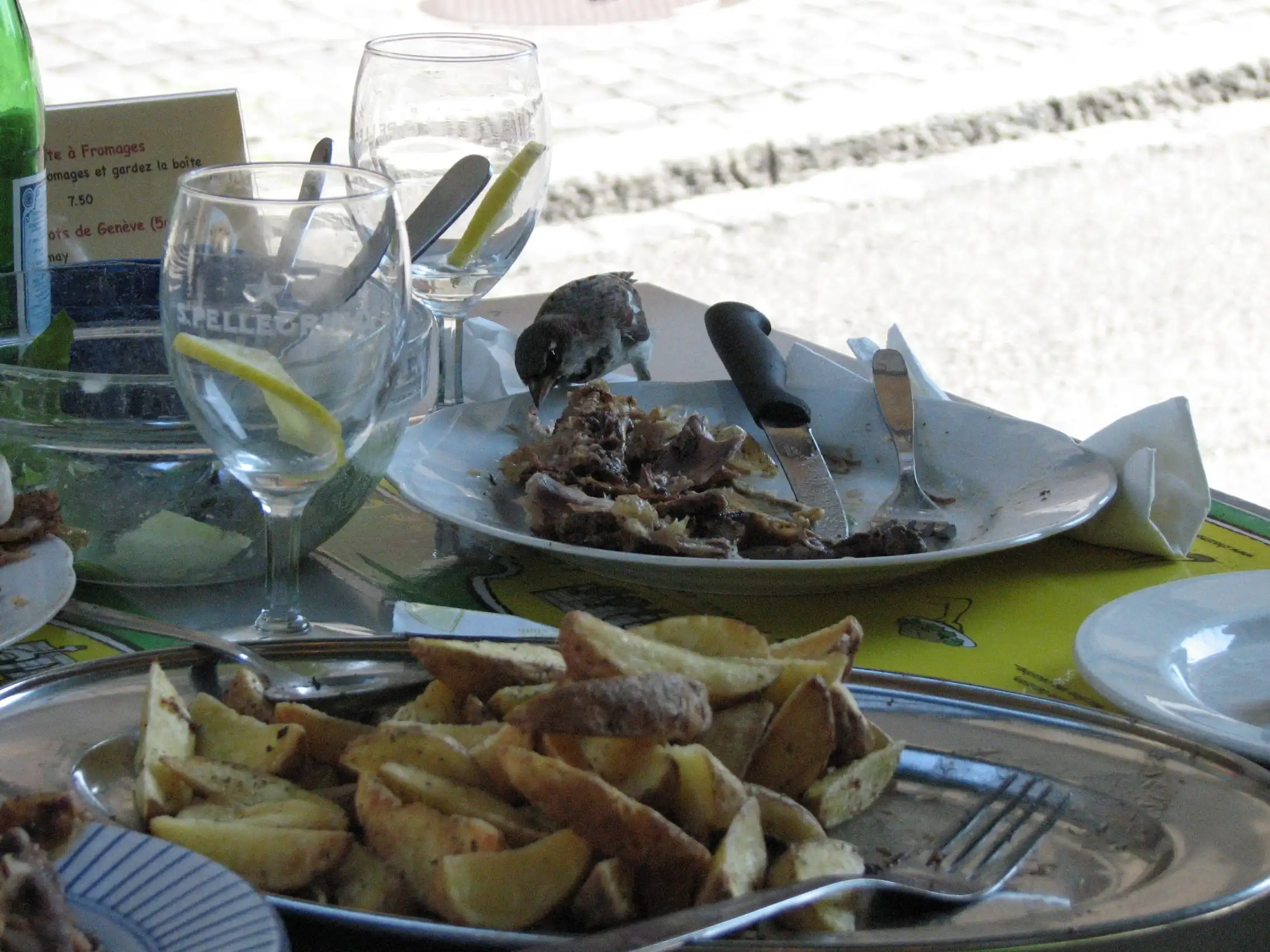 Устав бродить кругами, я решил пообедать в рекомендованном гидом недорогом ресторанчике. Основное блюдо из курицы с картошкой стоило по женевским меркам сущие копейки, а заведение известно тем, что вся утварь, включая столовые приборы, были привезены со свалки.