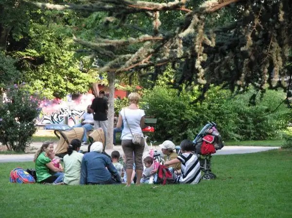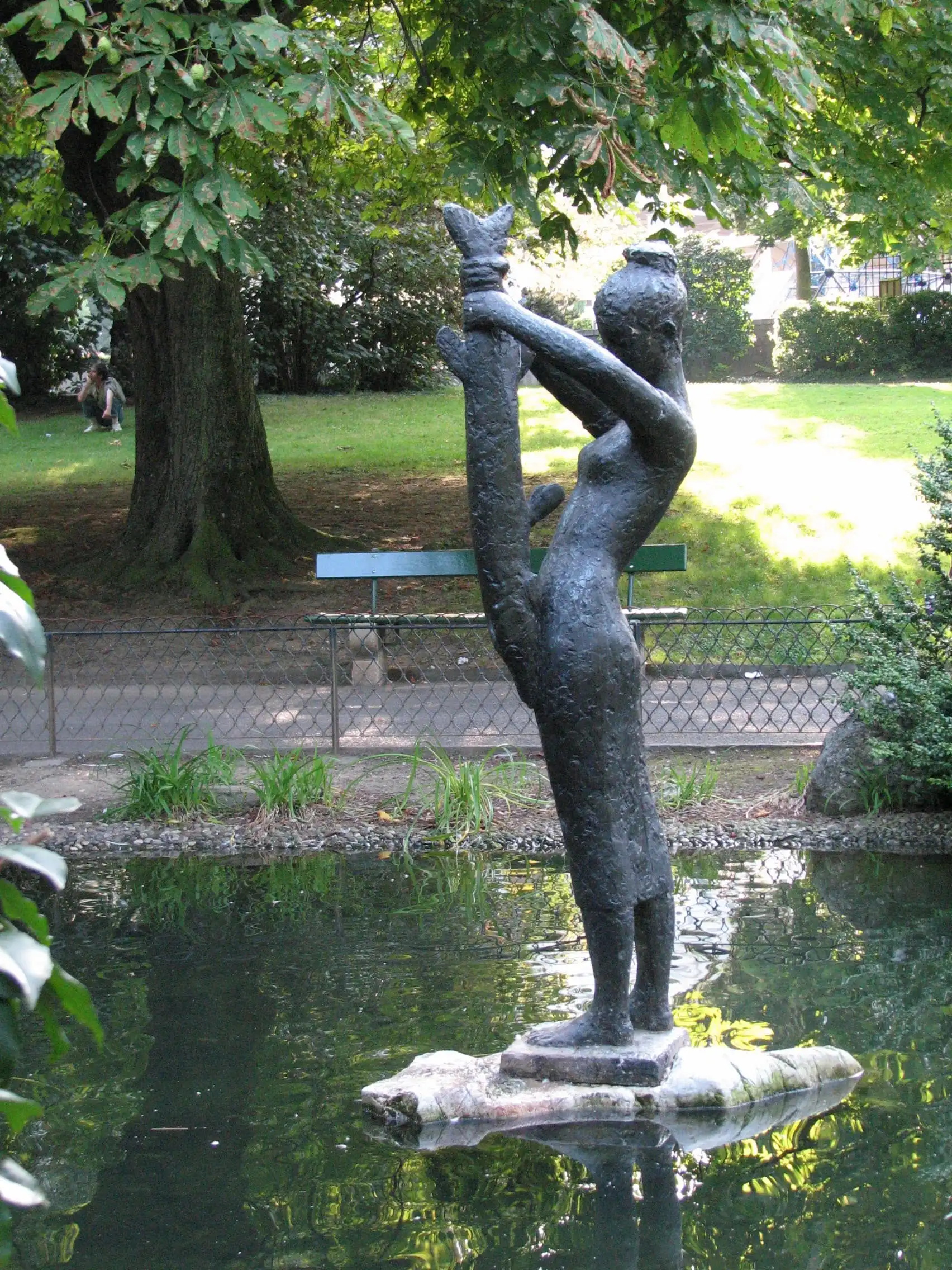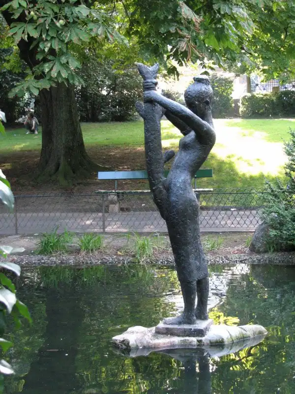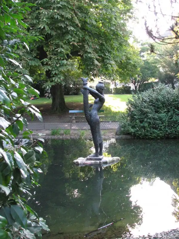 В завершение нашего путешествия прогуляемся по одному из красивых парков с маленьким озером и скульптурой “девушка с рыбой” и фонтанчиком.