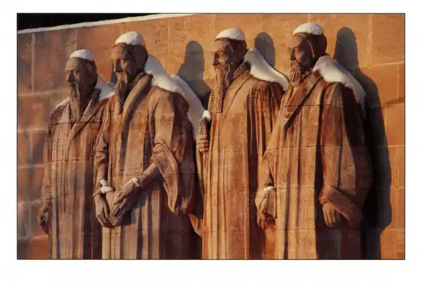 На фотографии внизу представлен памятник “Стена Реформации” 1909 года, посвящённый 400-й годовщине со дня рождения Жана Кальвина и 350-й годовщине образования Женевской Академии, знаменитой протестантской школы. Памятник представляет собой стену длиной 100м., на которой установлены 5-метровые скульптуры четырёх лидеров Реформации в Женеве – Гильома Фареля, Жана Кальвина, Теодора де Беза, первого ректора Академии, и Джона Нокса.