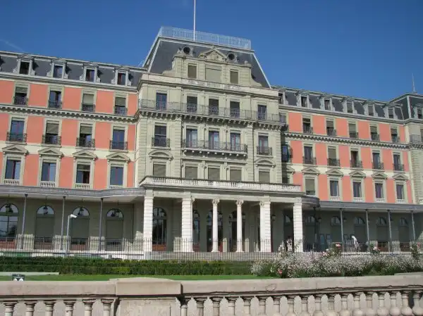 Крупнейший в мире конференц-центр по вопросам мира и безопасности, Дворец Наций в Женеве является самой яркой достопримечательностью Международного городка. Он был построен в 1929-1936 гг. в качестве места размещения Лиги Наций, основанной в 1920 г. для обеспечения мира в период после Первой мировой войны. В 1946 г. после прекращения деятельности Лиги Наций в комплексе зданий разместилась европейская штаб-квартира ООН.