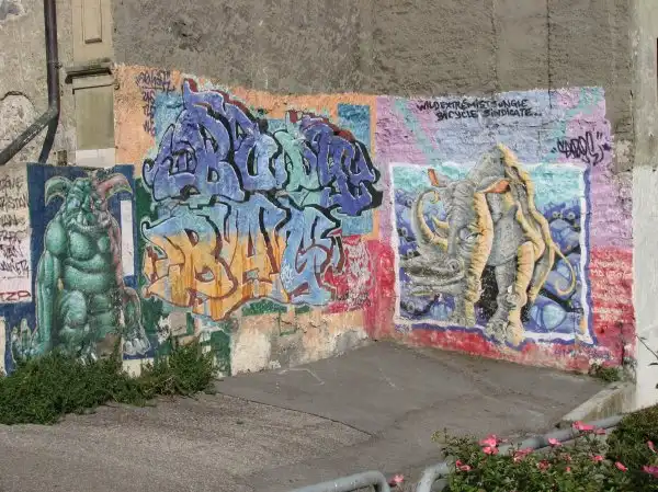 Снова студенческая общага с красивыми граффити. Я там даже Феликса Эдмундовича с надписью “droog” углядел…