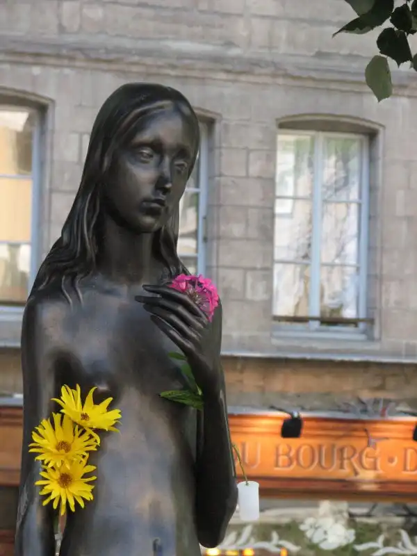 На одной из маленьких площадей Старого города стоит памятник несчастной проститутке. Девушка жила давно, и известна тем, что, занимаясь своей профессией, обивала пороги знатных домов в попытке вырваться из порочного круга, ища любую другую работу. Но жесткосердные жители работы ей не давали, отвергая её с презрением. Так она и умерла. Позже ей поставили такой вот красивый памятник, к которому люди сейчас приносят цветы.