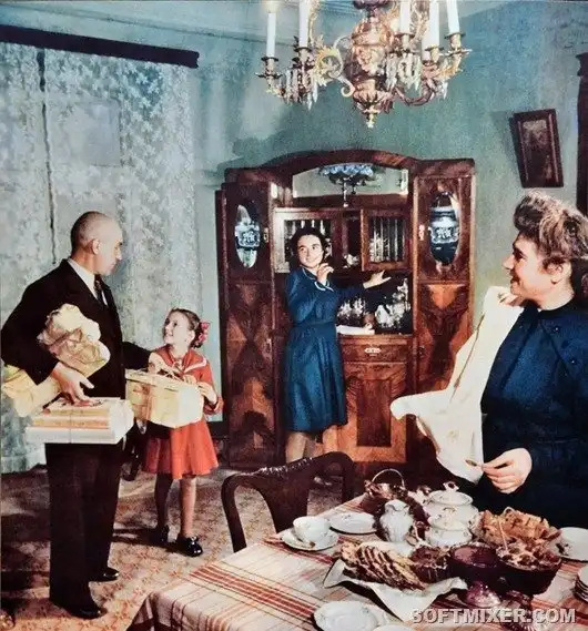 На этом фото 1953 г. как раз запечатлён такой радостный момент в одной из московских квартир: