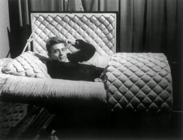 Американский актёр Джеймс Дин позирует в гробу в своём доме, январь 1955. В этом же году он погиб в автомобильной катастрофе