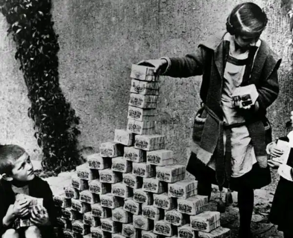 Дети играют пачками денег в период гиперинфляции. Германия, 1922 год