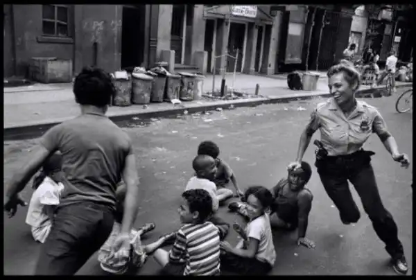 Офицер полиции играет с детьми. Нью-Йорк, 1978 год
