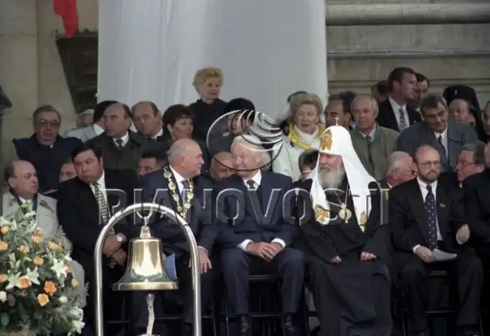 Юрий Лужков, Борис Ельцин и Патриарх Московский и всея Руси Алексий II на церемонии открытия празднеств.