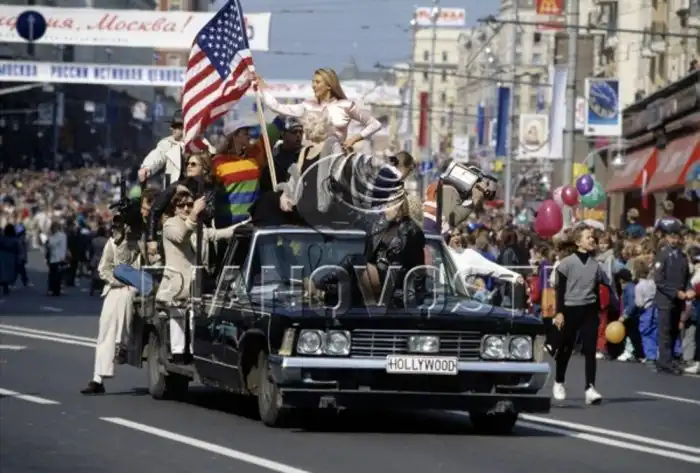 Сейчас такого театрализованного шествия с американскими флагами, наверное, не допустили бы.