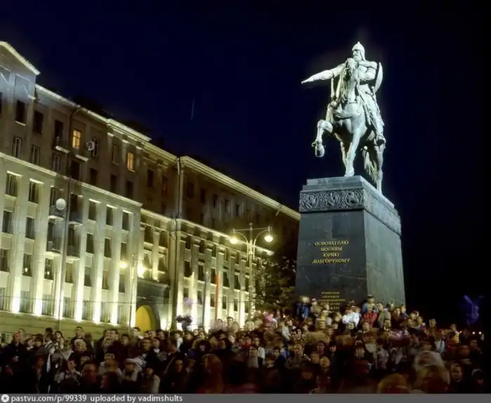 Места хватало не всем, приходилось лезть даже на памятник Юрию Долгорукому.
