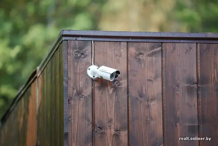 В отсутствие хозяина за безопасностью в доме и на участке следят видеокамеры, онлайн-картинку с которых всегда можно просмотреть на телефоне. Еще одна камера установлена внутри дома перед дверью. Она автоматически начинает запись, как только у входа появляется человек, и высылает данные на электронную почту.