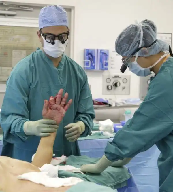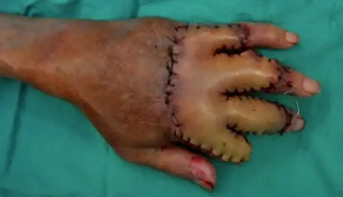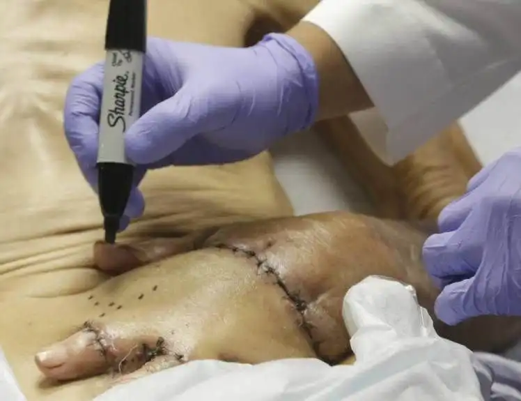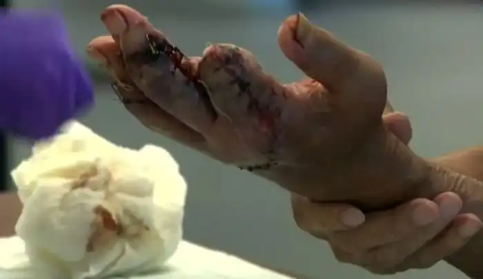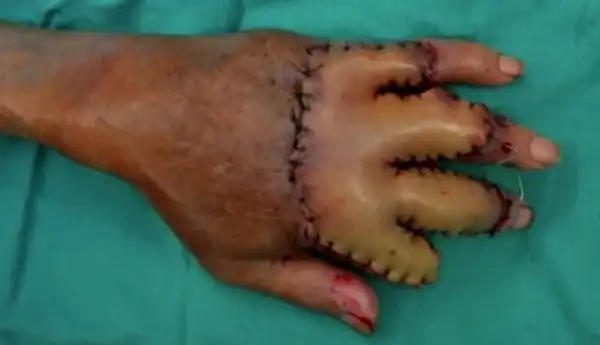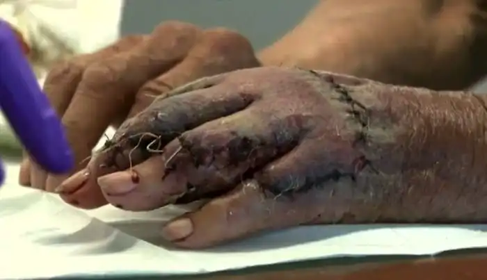 87-летний пенсионер Фрэнк Райс получил тяжелую травму руки и ожог в результате инцидента, произошедшего во время замены покрышки. Самым очевидным выходом была ампутация, но хирурги больницы Хьюстона решили не идти легким путем и пришили руку мужчины к его же животу. Указательный палец спасти не удалось, но благодаря выросшим тканям рука будет функционировать.