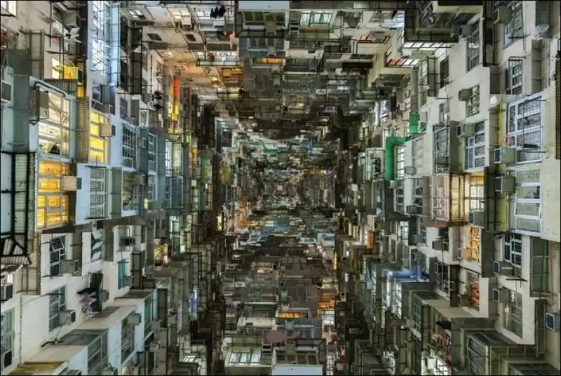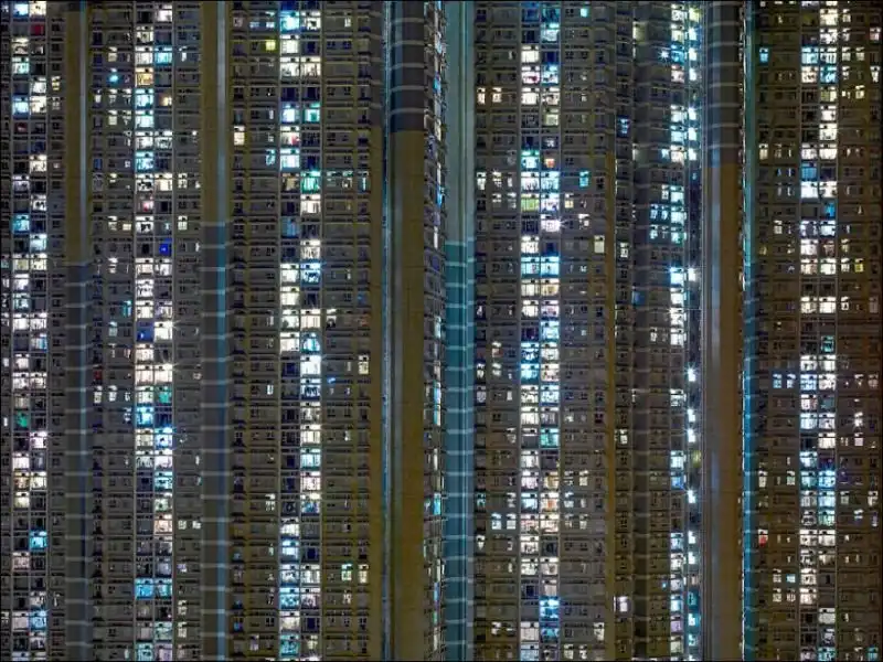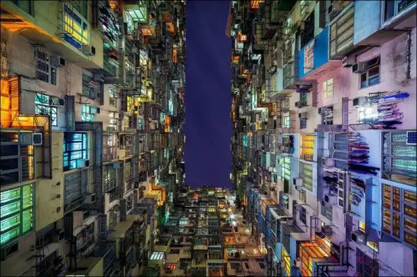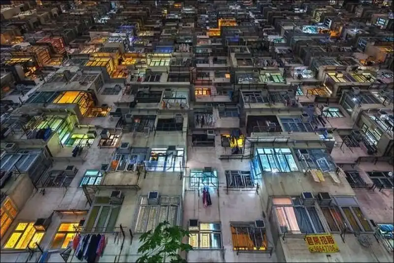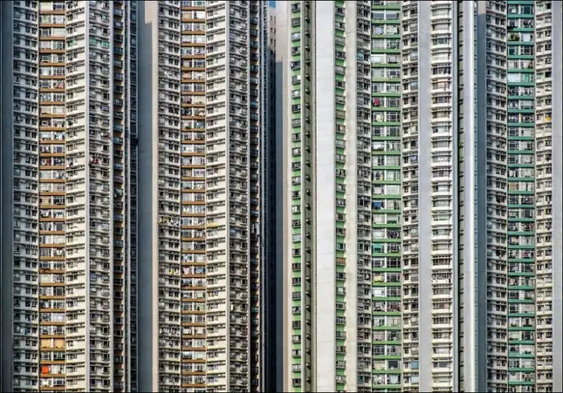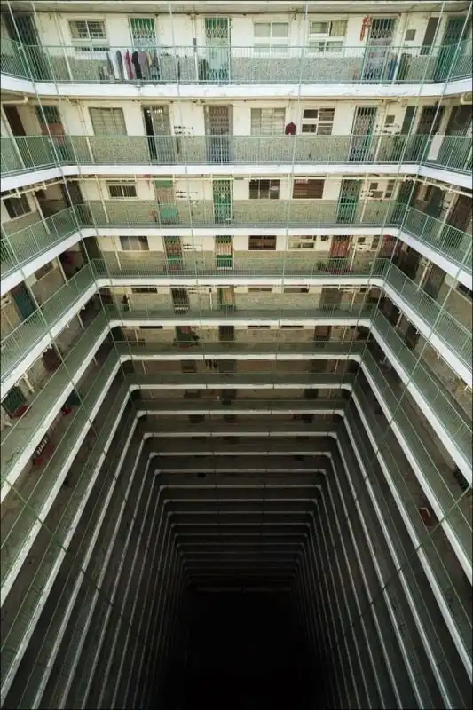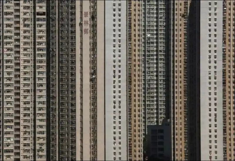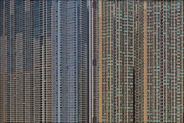 Огромные многоквартирные дома с очень маленькими, тесными квартирками. Примерно 10 кв.м. на семью.