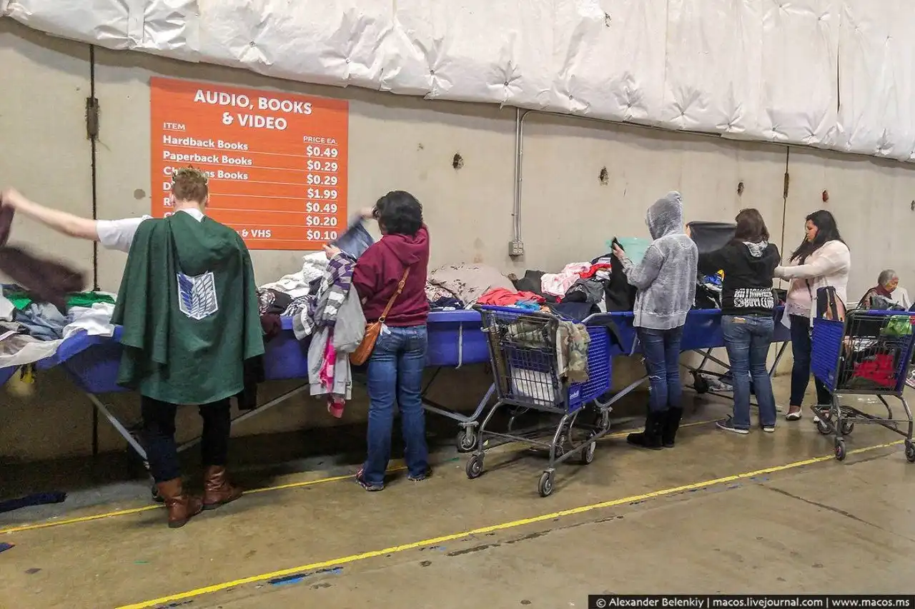 В Штатах есть специальные магазины, где закупаются одеждой не просто бедные люди, а бомжи и бездомные. Зато дёшево. Значение слова “прибарахлиться” обрело новый смысл.