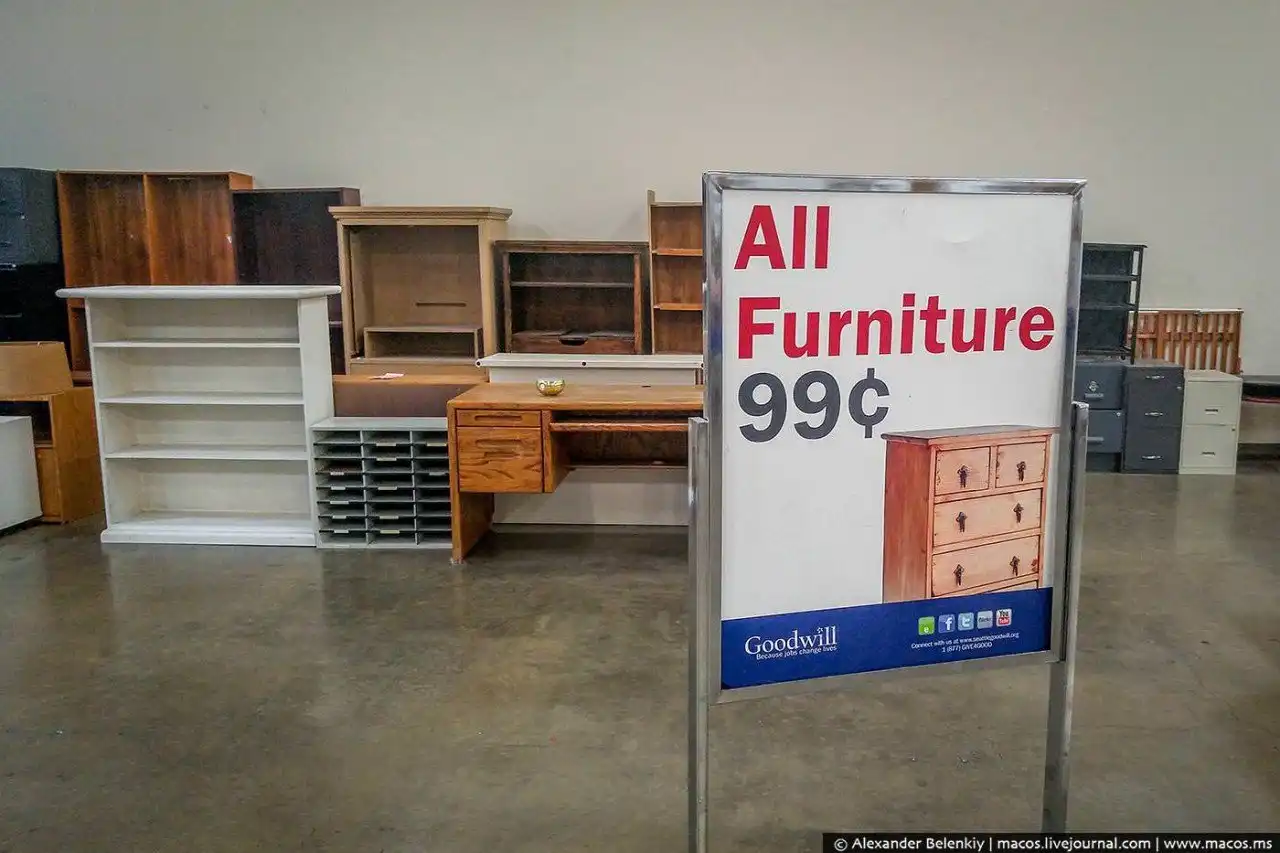 Гудвилл это не только старые шмотки, но и старая мебель. Любой стол, шкаф, кровать или комод стоят меньше одного доллара.