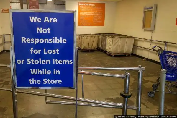 2 На входе грозно предупреждают, что магазин не несёт ответственности за украденные или потерянные внутри вещи. Что упало — то пропало. И моментально стало товаром.