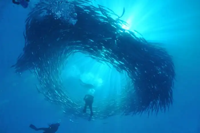 Кольцо рыб, образовавшееся вокруг ныряльщиков.