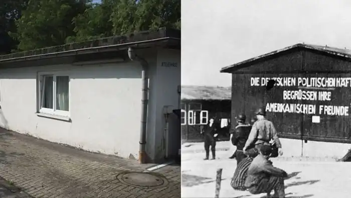 По одной из версий, бараки, в которых живут мигранты, являются бывшими бараками для персонала концлагеря, по другой версии, эти бараки были построены в 1950-е годы. Бараки, в которых содержались заключенные концлагеря, были снесены после окончания Второй мировой войны.