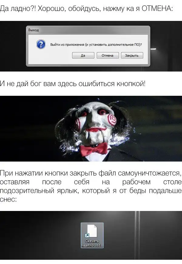 Наглядное пособие откуда появляются еретическое ПО, от которого некоторым охота сжечь компьютер.