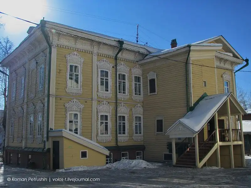 Архитекторы: П.Ф. Федоровский и С.В. Хомич. Мастер-краснодеревщик Степан Незговоров. До революции использовался как доходный дом. В 1911-15гг. в нем снимал жилье выдающийся русский писатель В.Я. Шишков. Здесь он написал своё первое крупное произведение - "Тайга".