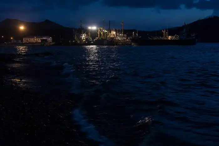 Дельфин. Эта бухта названа по имени одноимённого судна, на котором в начале 20-го века велись исследования этой территории. Она знаменита опасными камнями, загораживающими вход судам, и живописной лагуной, образованной в устье реки Островной. Бухта в зимние месяцы скована льдом, что отличает её от остальных.