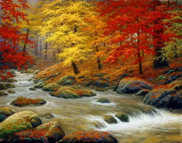 Художник Чарльз Уайт родился в 1943 году в Квебеке (Канада). Когда он был еще подростком, многие его пейзажи успешно продавались, а сейчас они уже находятся в собраниях по всему миру. Картины «Золотая осень» предлагают зрителю отложить в сторону работу и окунуться в мир спокойной красоты.