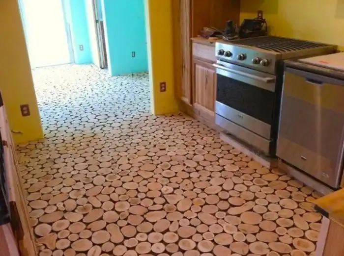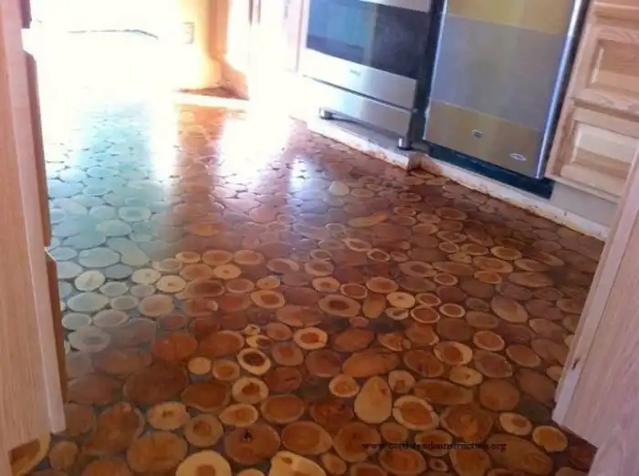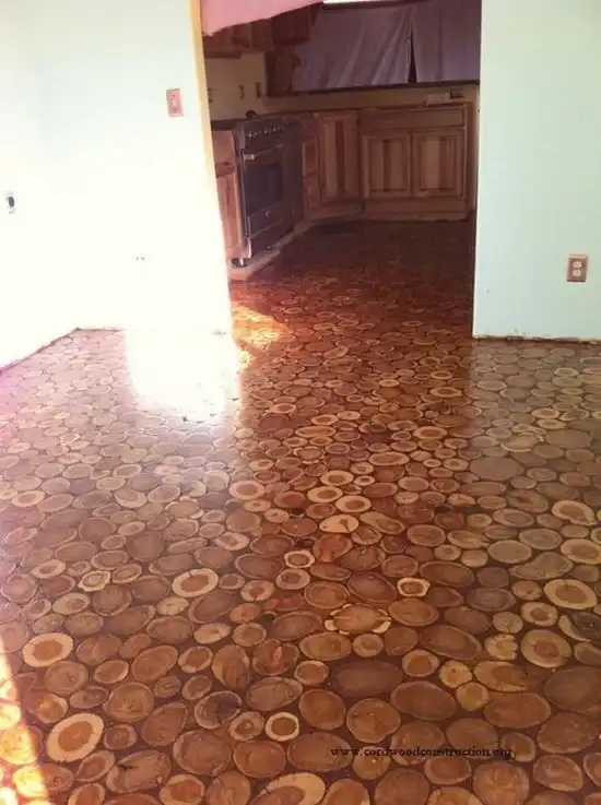 Согласитесь, что пол из дров звучит довольно странно, но, как оказалось, существует специальная технология которая используется уже довольно давно. Раньше, таким образом покрывали полы в старых коттеджах, однако, сейчас это становится мировым трендом, как говорится, все новое - это хорошо забытое старое.