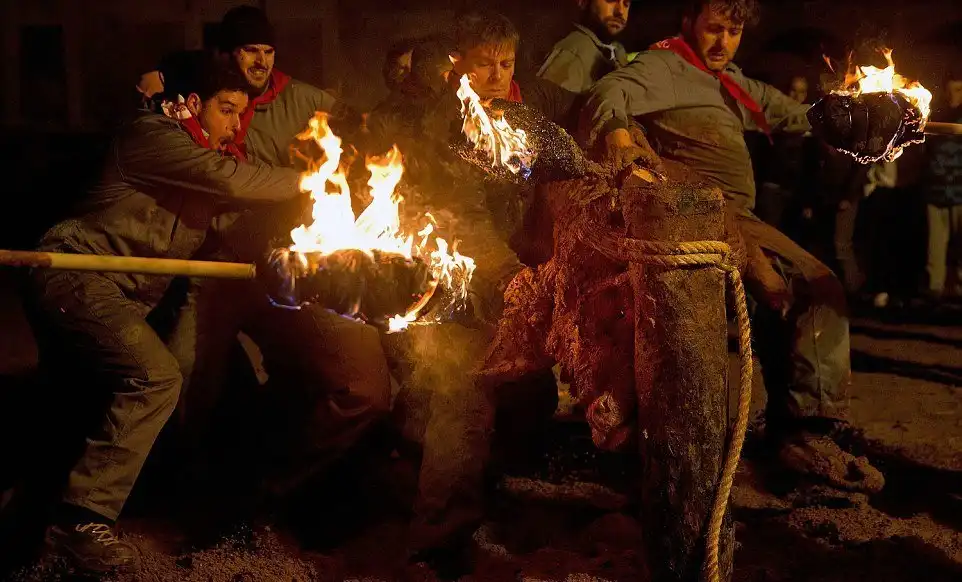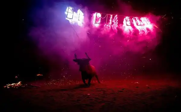 Toро де Джубило-огненный праздник с горящими быками.