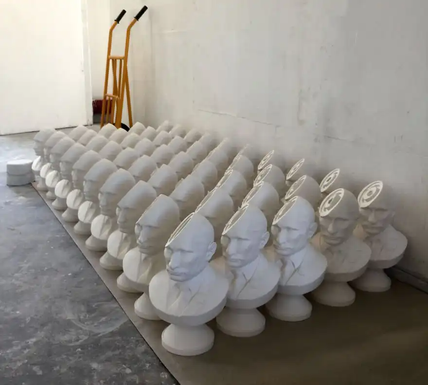 Какие-то люди взялись выпускать серию настольной акустики под названием Sound of Power. Интересна она тем, что как бы в качестве колонок выступают бюсты знаменитых людей. Первым в серию попал Владимир Путин. Его бюст сделан из композитного материала, напоминающего мрамор, и имеет вмонтированный в срез на голове динамик мощностью 20 ватт. Колонка весит 1.2 кг.