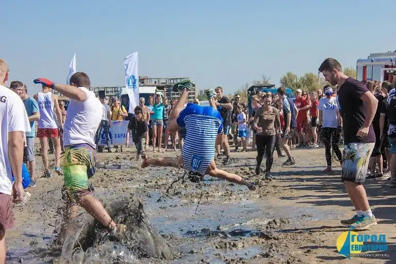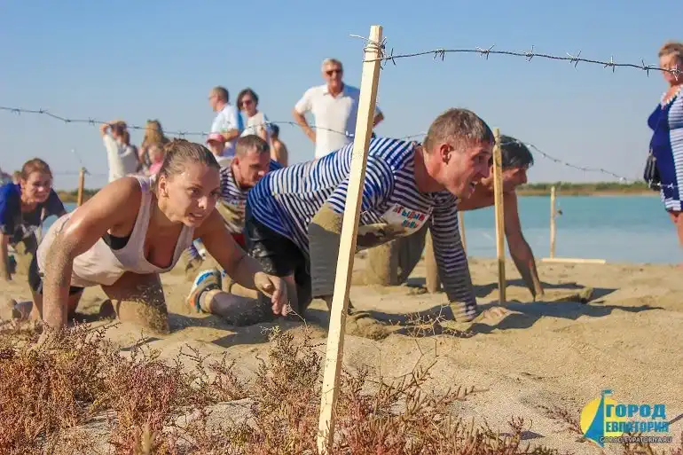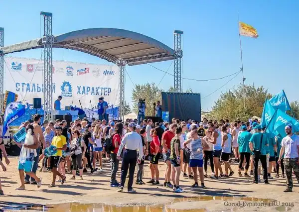 В Евпатории возле озера «Мойнаки» состоялся экстремальный забег «Стальной характер». В забеге зарегистрировалось 277 команд из разных регионов России, а это в сумме составляет 1662 смельчака, которые решили проверить свой характер на прочность. Это четвертый забег этого сезона (до Евпатории, подобные мероприятия проводились в городах Нягань, Нефтеюганск и Тюмени). Участники преодолели 8 километров через соленую воду озера Мойнаки, лужи с грязью, колючую проволоку, непроходимые трехметровые стены и прочие преграды.