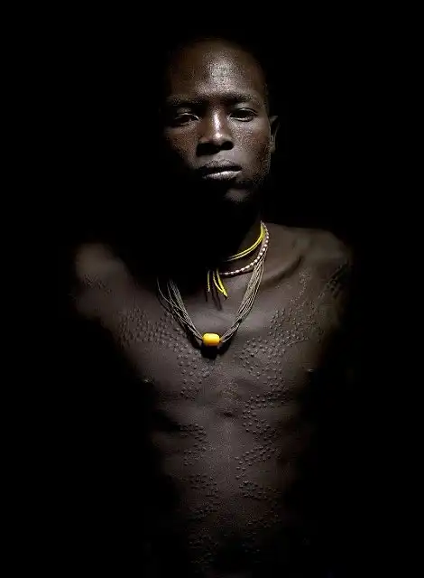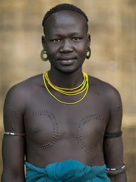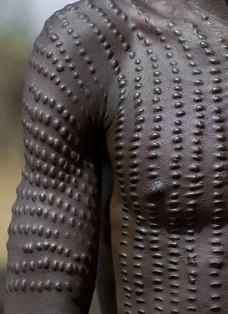 Скарификация распространена не только среди фриков и модификаторов - африканским ритуалам шрамирования не одно столетия. Распространены они в эфиопских племенах боди и сурма, среди нуэров в Южном Судане и карамаджонгов в Уганде. Обычно шрамы наносятся с помощью колючек и лезвия.