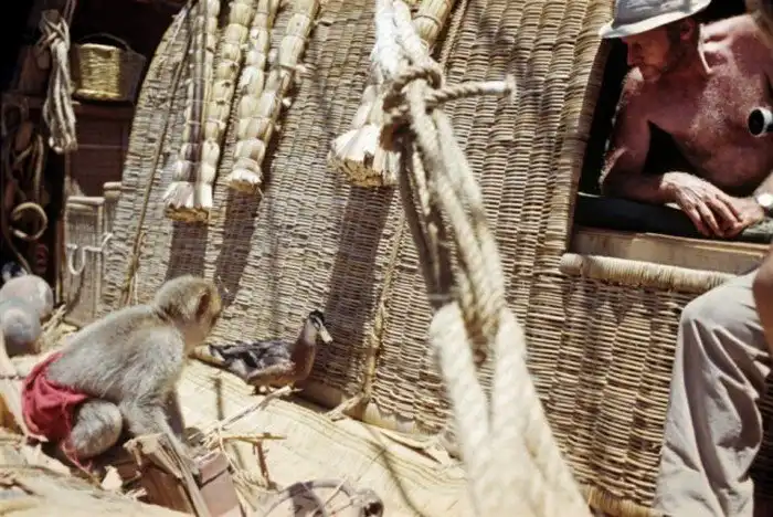 25 мая 1969 года состоялся старт папирусной лодки "Ра". На борту, кроме 7 человек экипажа, были еще обезьяна Сафи, куры и утка.